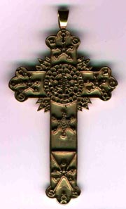 Pe m 120 Prix : 150.00$/en bronze Prix : 350.00$/ en Argent .925 Croix Tétonique. Dimension : 52mm x 60mm |