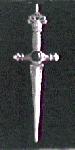 Pe m 150 Prix : 50.00$ / en Argent .925 Pendentif Epée orné au centre d'un Grenat Dimension : 24mm x 70mm |