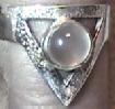 BA 210 Prix : 120.00$ +OU- (selon la pierre) (grandeur de base . . . 7) Bague triangulaire en argent, sertie d'un cabochon de 8 mm. |