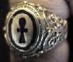 BA 888 Prix : 210.00$ (grandeur de base . . . 9,5) Chevalière en argent, ornée d'une croix de vie en relief. |