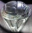 BA 1000 Prix : 245.00$ (grandeur de base . . . 8) Bague en argent, ornée d'un scarabée en argent. |